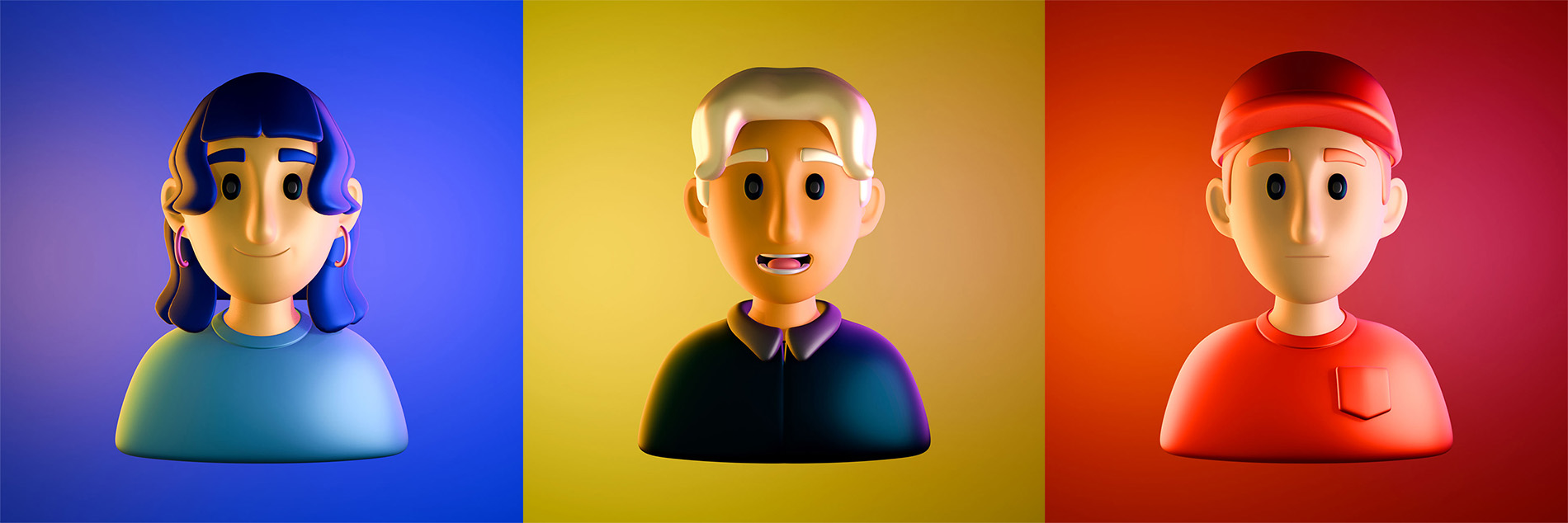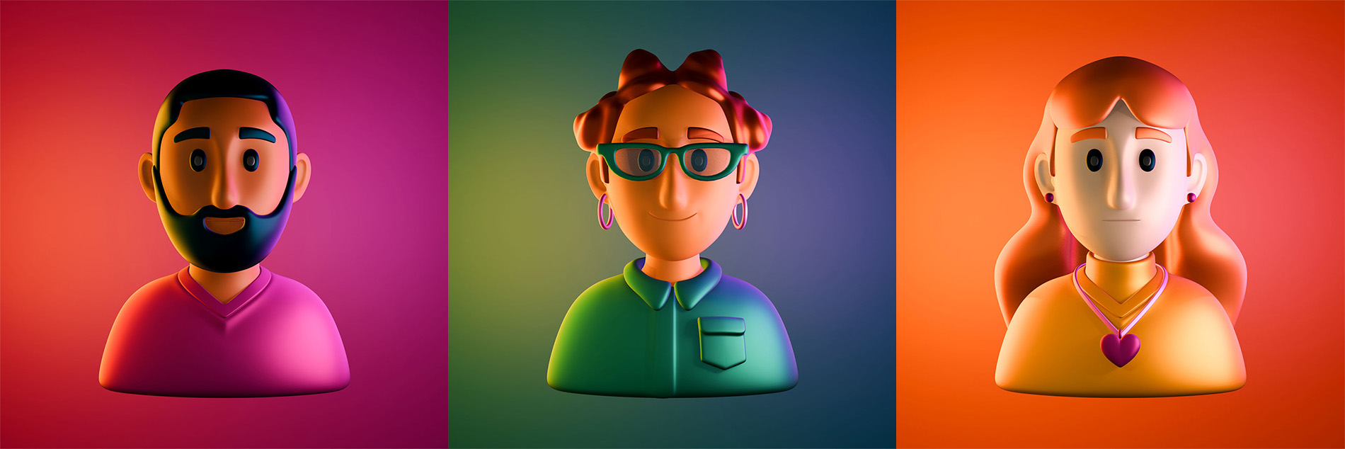 We sourced a kit of 3D avatar components, customised each one to match the distinct traits of their personas, and then took things up a notch — bringing them to life with vibrant colours, expressive lighting and a polished digital finish.