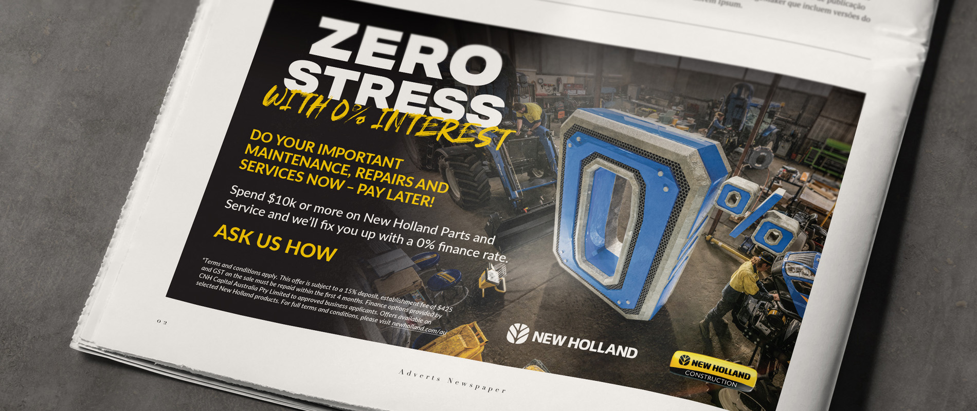We worked with New Holland Agriculture to bring their Zero Stress, 0% Interest campaign to life, starting with a bold creative concept developed during a collaborative workshop.